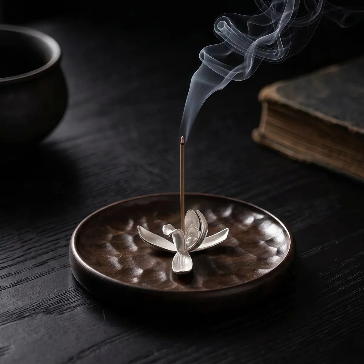 Stillness & Bloom – Magnolia Flower & Ebony Incense Holder Set
